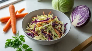 Many coleslaw issues come from preparation rather than ingredients. Having the right tools makes a big difference. A sharp knife helps create thin, even slices of cabbage. A mandoline can also be used if handled carefully. A box grater works best for carrots, while a large mixing bowl allows you to combine everything evenly without crushing the vegetables. A small whisk or fork is ideal for blending the dressing smoothly.
